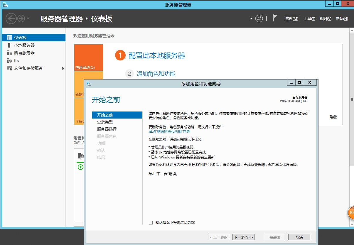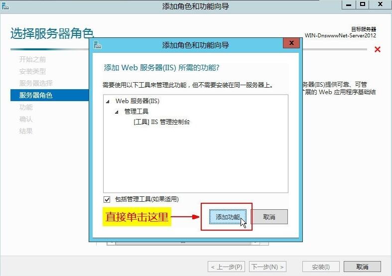 3、添加角色和功能,如上圖所示,然后出現(xiàn)下面界面,安裝下面界面一步步安裝提示安裝。