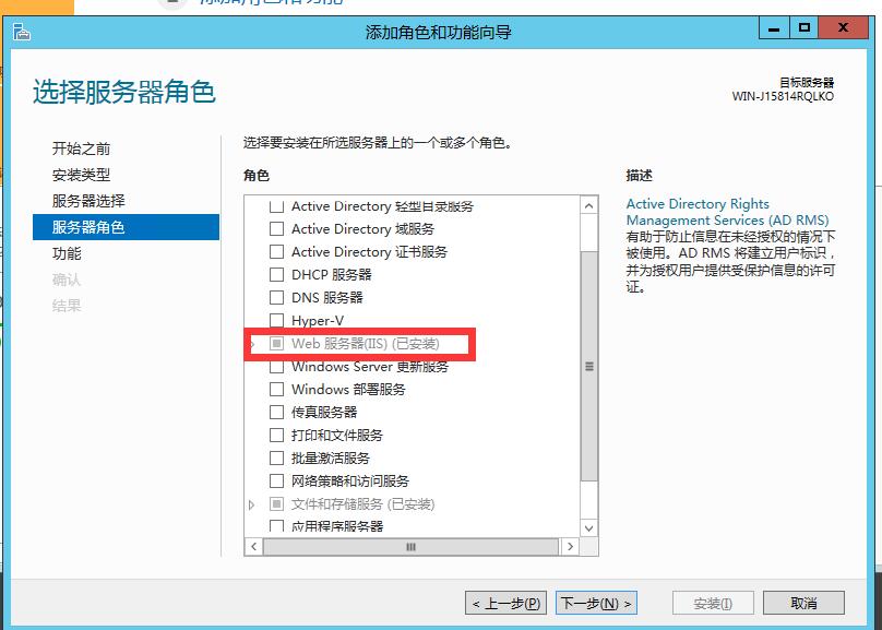 上面圖中顯示的是我已經(jīng)安裝過了web服務(wù)器IIS,如果是你,要在web服務(wù)器(IIS)這里需要勾選下,然后出來下面界面,再按以下界面一步步操作:
