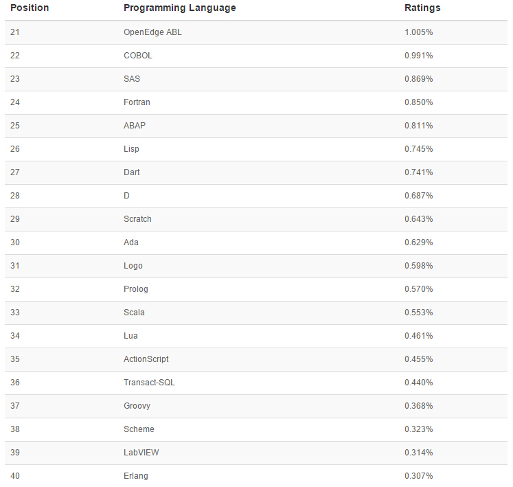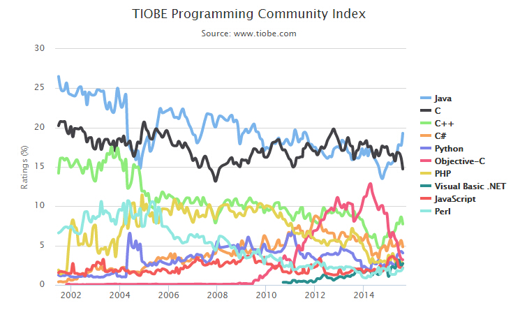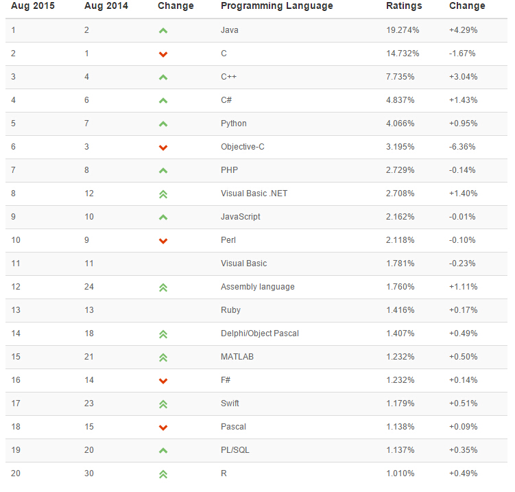 2015年8月網(wǎng)絡(luò)編程語言排行榜