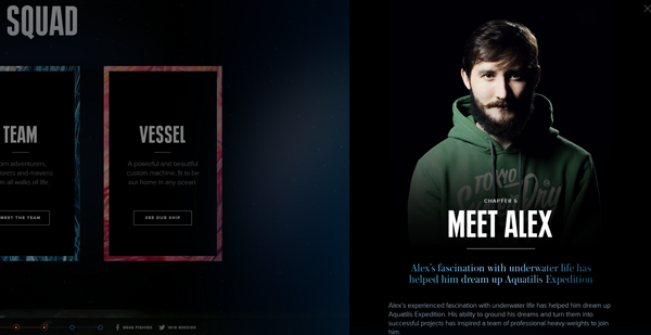 其實(shí)我們提過(guò)的很多特效都在該網(wǎng)站得到了體現(xiàn),運(yùn)用了大量的網(wǎng)頁(yè)新技術(shù),比如WebGL技術(shù)、序列幀動(dòng)畫(huà)……尤其在頁(yè)面切換時(shí)的動(dòng)效。